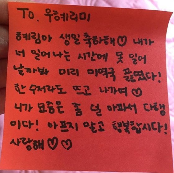 [Nb] Sunmi leaves a thoughtful birthday note for Hyelim